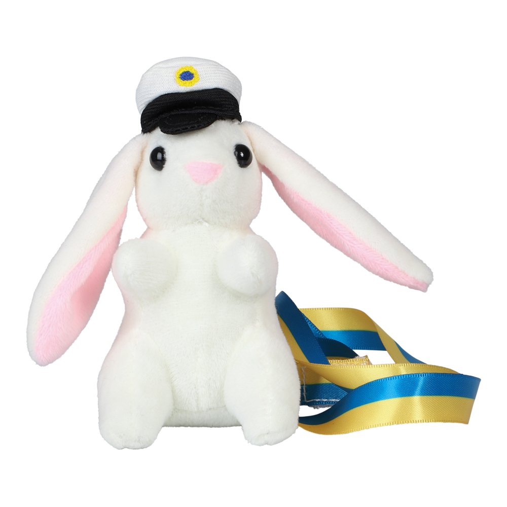 Søt hvit kanin med konfirmasjonslue og gult/blått bånd å gi til konfirmasjonen!