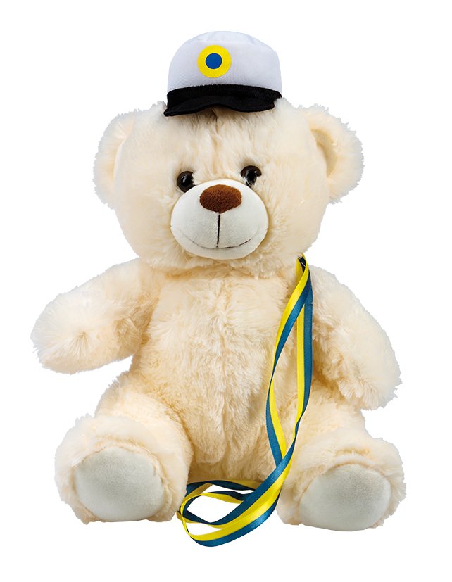 En supersøt studentbamse med studentlue. Teddybjørnen er laget av polyester og øynene er laget av plast. Blått og gult bånd inkludert. En perfekt gave å gi til studenten!