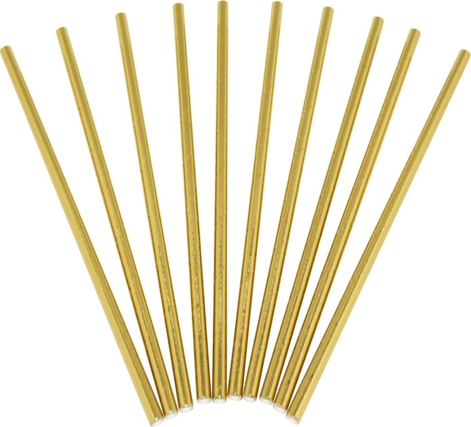 Sugerør i gul metallic. Laget av biologisk nedbrytbart papir. Også egnet til bruk som kakepoppinner!