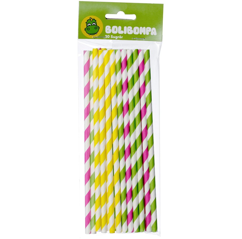 20-pakning med stripete pappsugerør - Match med resten av Bolibompa-temaet vårt.