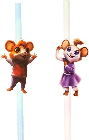 Papirsugerør. To forskjellige design med utstansede figurer i motiver av Camilla Brincks Mikke Mus og Helium.