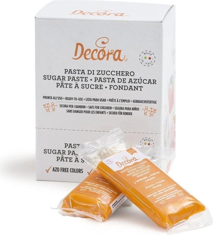 En super deilig sukkerpasta fra Decora! Den er elastisk og lett å jobbe med takket være kakaosmøret den inneholder, og den er helt fri for palmeolje og AZO-fargestoffer. Kan brukes til å dekke kaker eller lage pynt. Denne pakken på 100 gram er perfekt for bruk til mindre detaljer.