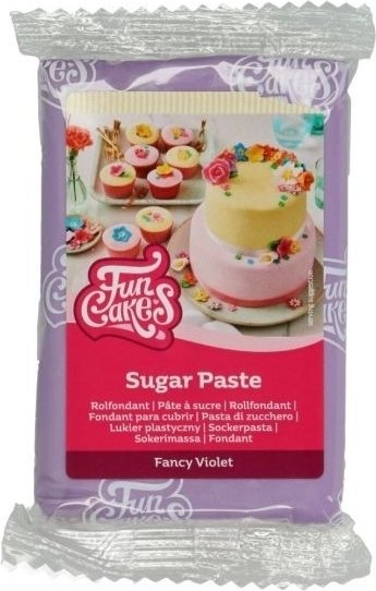 250 gram sukkerpasta i fargen «Fancy Violet» med en mild vaniljesmak.