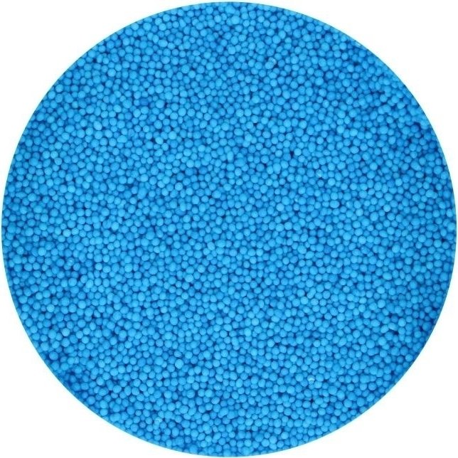 Små sukkerperler, nonpareils, i blått. Ett glass inneholder omtrent 80 gram. Ingredienser: sukker, stivelse (hvete, mais), glukosesirup, fargestoff (E131), vegetabilsk fett, (kokos, raps) overflatebehandlingsmiddel (E901).