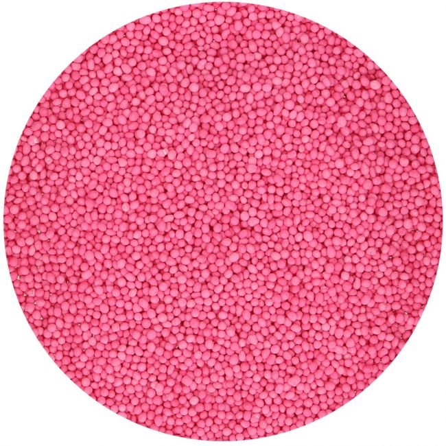 Små sukkerperler, nonpareils, i knallrosa.