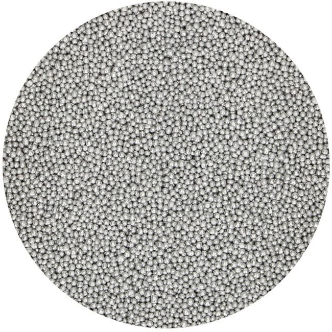 Små sukkerperler, nonpareils, i sølvmetallic.