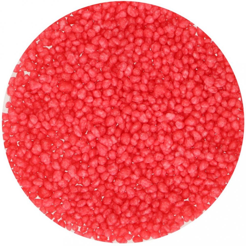 Søte små sukkerprikker i rødt - så fine å pynte smultringer, kaker, cupcakes osv. med. Siden strøsselet kun inneholder naturlige fargestoffer, kan nyansene variere noe.