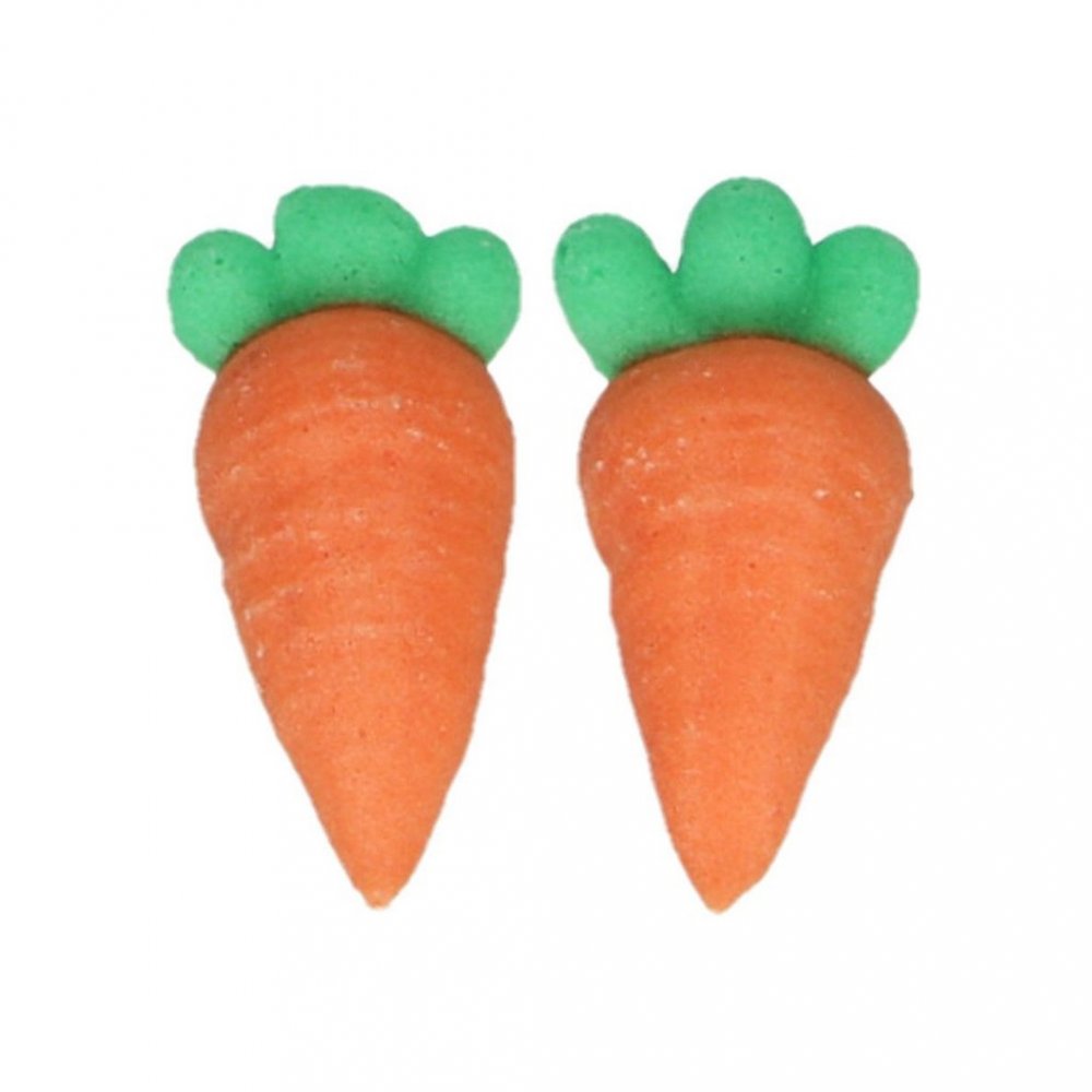 Sukkerdekorasjoner formet som små gulrøtter. Perfekt til gulrotkaker og påskebakst! Også flott å bruke på kaker, muffins og terter.