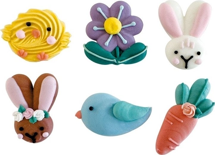 Sukkerpynt - Påske - Kylling, Blomst, Kaniner, Gulrot, Fugl