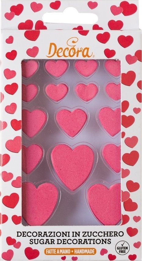 16-pakning med røde sukkerhjerter - perfekt som pynt på kaker eller cupcakes.