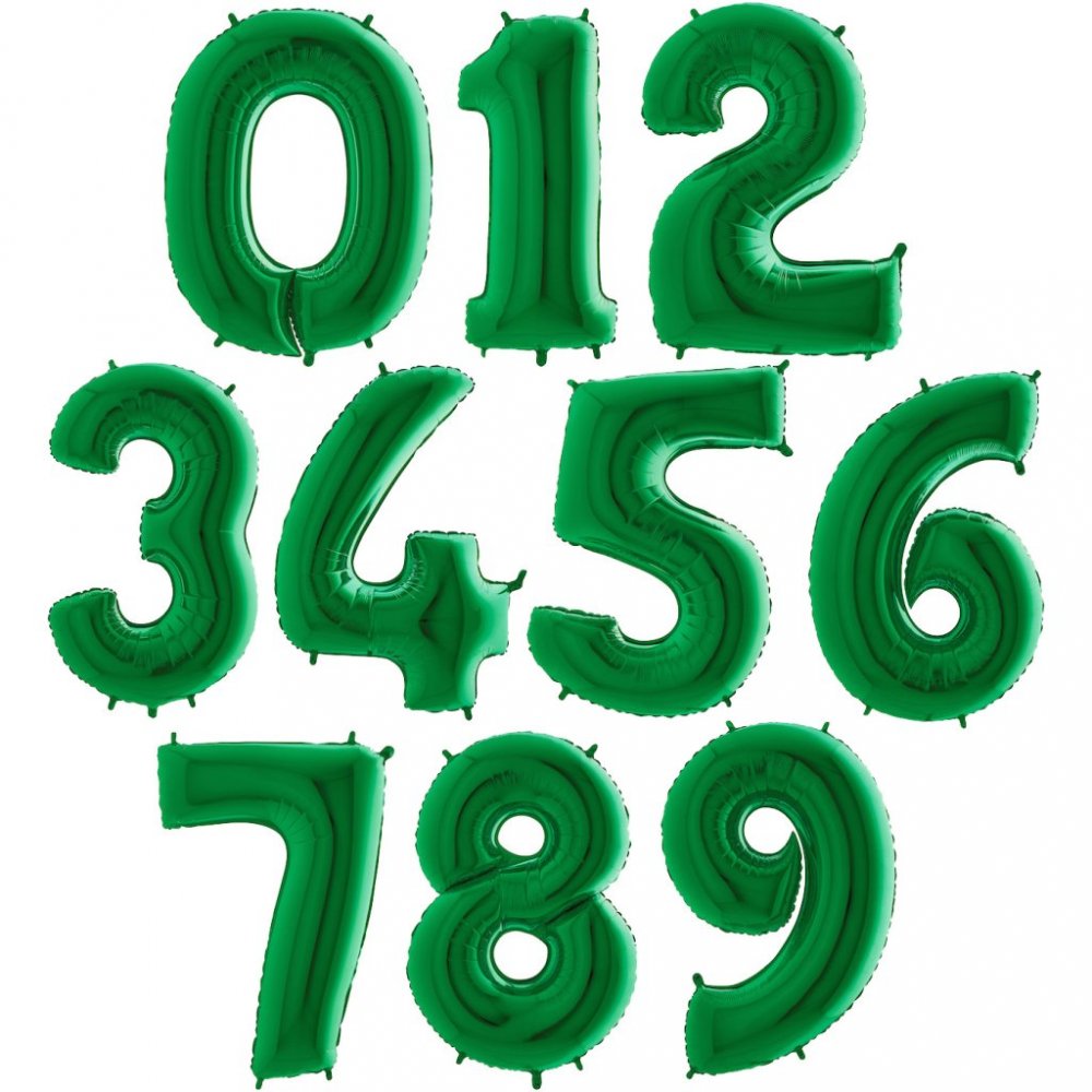 Store tallballonger i grønt. Tilgjengelig i tallene 0-9.