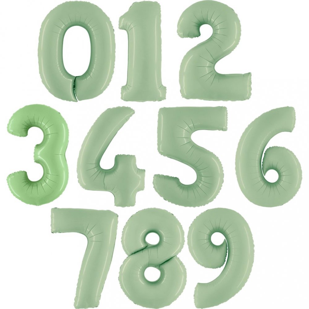 Høykvalitets mintgrønn tallballong som kan fylles med både luft og helium. Ballongen er omtrent 1 meter høy når den er oppblåst. Selges enkeltvis og tilgjengelig i tallene 0-9.