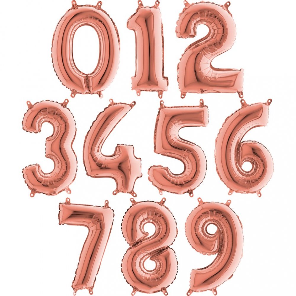 Store tallballonger i roségull. Tilgjengelig i tallene 0-9.