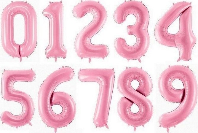 Høykvalitets rosa tallballong som kan fylles med både luft og helium. Ballongen er omtrent 1 meter høy når den er oppblåst. Selges enkeltvis og tilgjengelig i tallene 0-9.