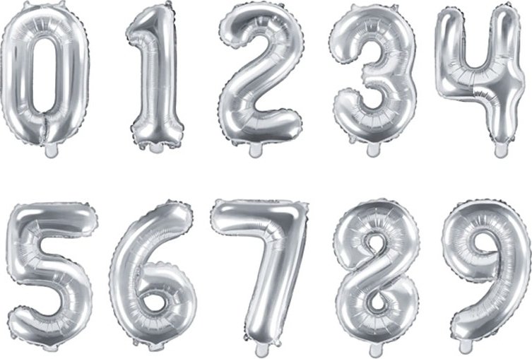 Høykvalitets sølvfarget tallballong som kan fylles med både luft og helium. Selges enkeltvis og tilgjengelig i tallene 0-9.