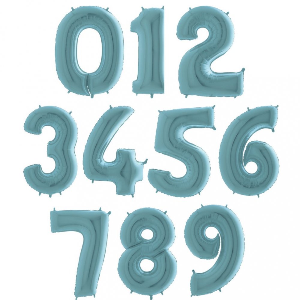 Pastellblå tallballong av høy kvalitet som kan fylles med både luft og helium. Ballongen er omtrent 1 meter høy når den er oppblåst. Selges enkeltvis og tilgjengelig i tallene 0-9.
