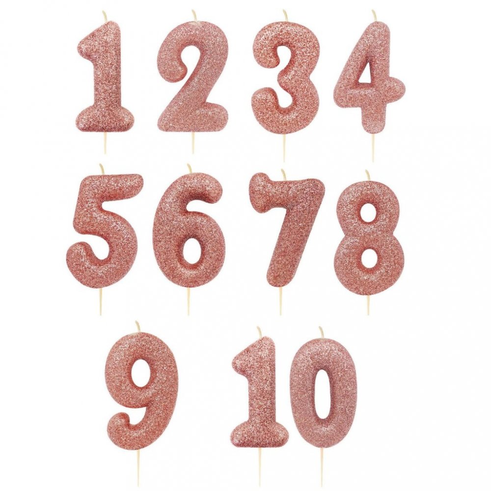 Nummerlys - Glitter - Roségull - Nummer: 1 (16230)