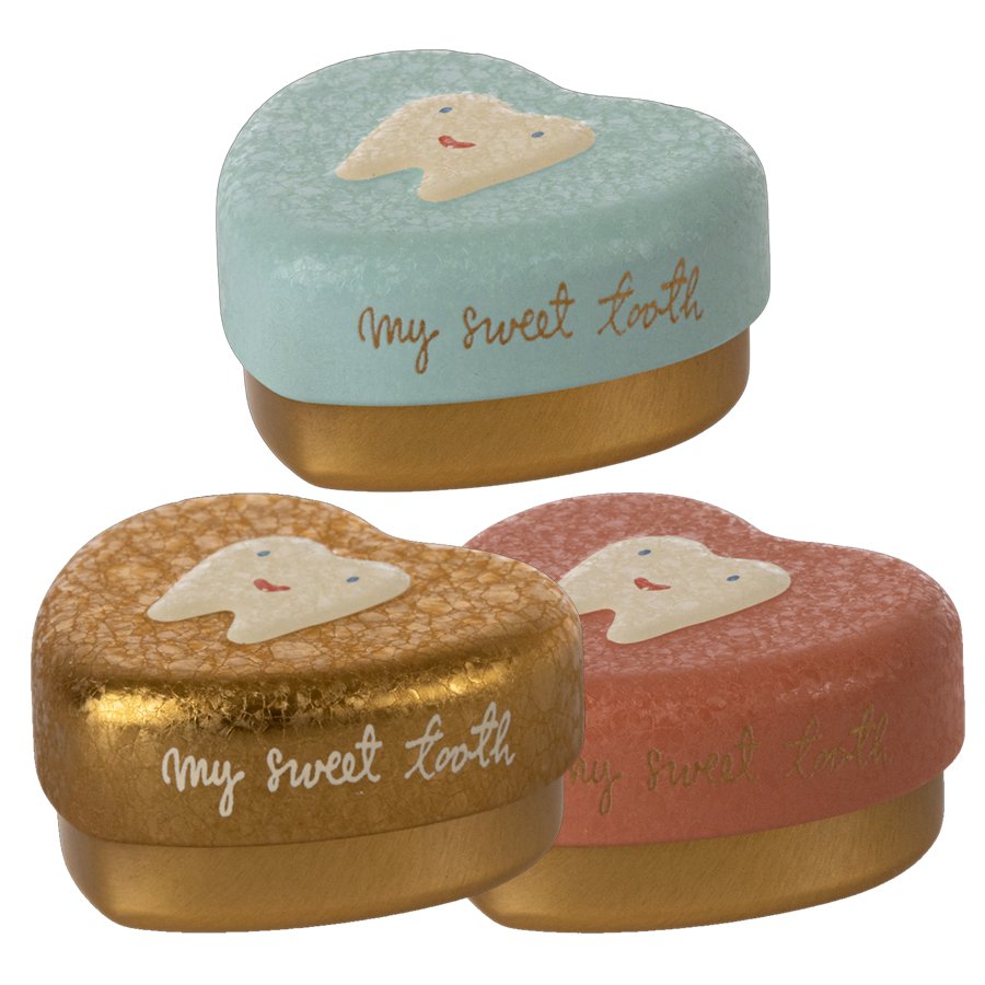De søteste små blikkboksene med teksten «my sweet tooth» fra Maileg.