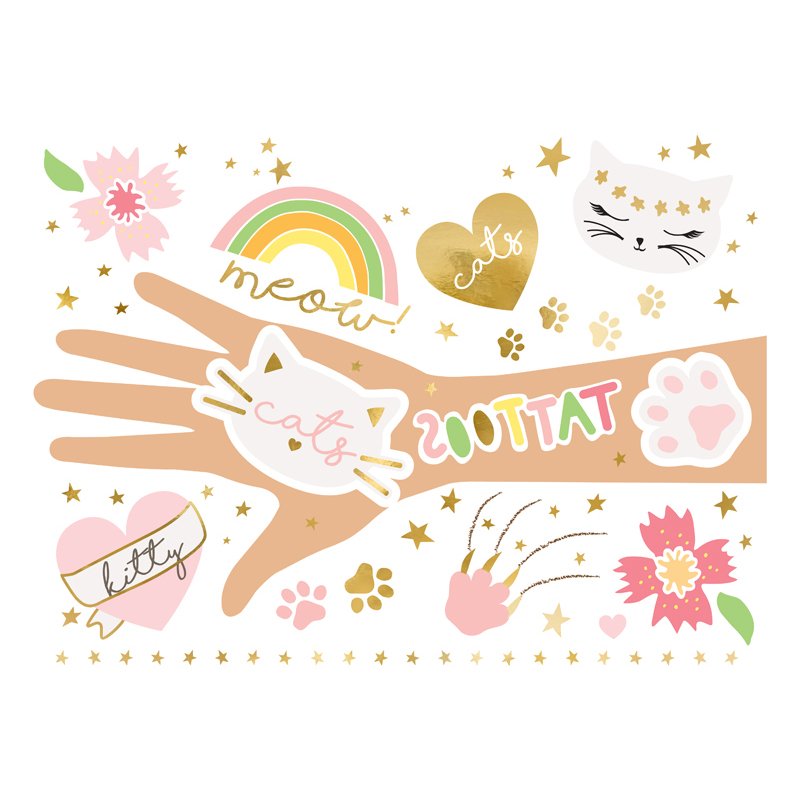 Midlertidige tatoveringer med en blanding av farger, mønstre og katter. Supermorsom som festgave!