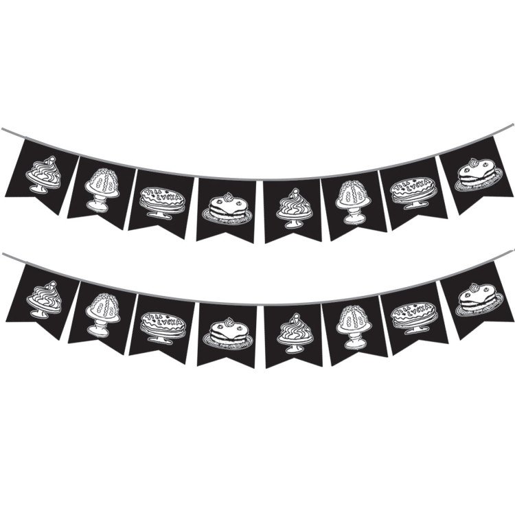 Superfin svart/hvit vimpel til Pippi Langstrømpe-festen med tilhørende fargestifter (5 i forskjellige farger). La barna fargelegge som en aktivitet på festen.