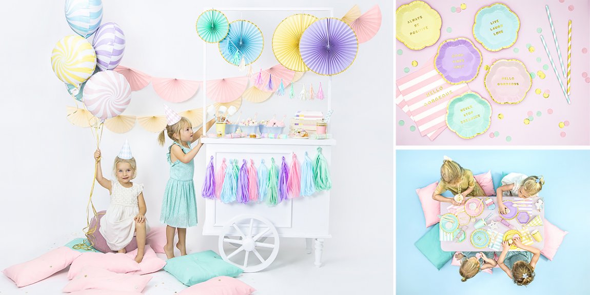 Ballonggirlander med pastellbokstaver - Gratulerer med dagen.